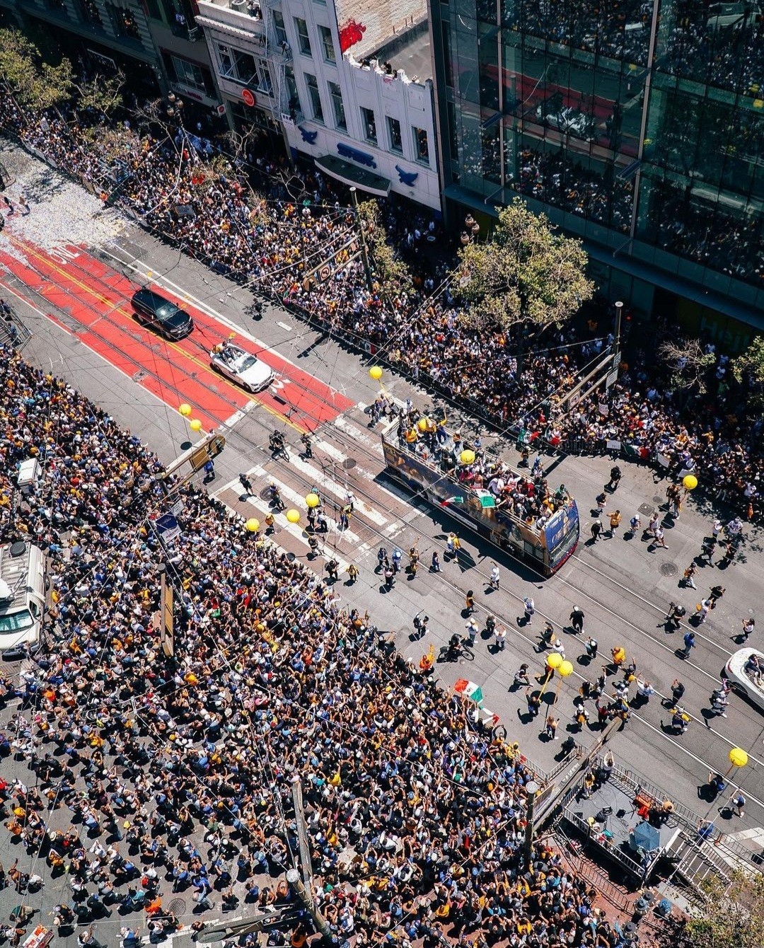San Francisco je hore nohami. Do mesta totiž prišli oslavovať čerství šampióni NBA, Golden State Warriors. Ulicami sa viezli tradične v autobuse s otvorenou strechou.