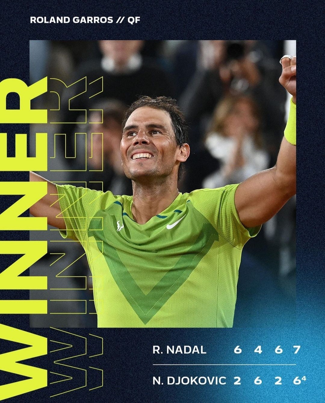 Aktuálne prebiehajúci grandslamový tenisový turnaj French Open alebo Roland Garros 2022 priniesol súboj dvoch tenisových gigantov už vo štvrťfinále. Zápas medzi Rafaelom Nadalom a Novakom Djokovičom bol označovaný ako "predčasné finále". Títo dvaja giganti spolu odohrali už 59. spoločný zápas.